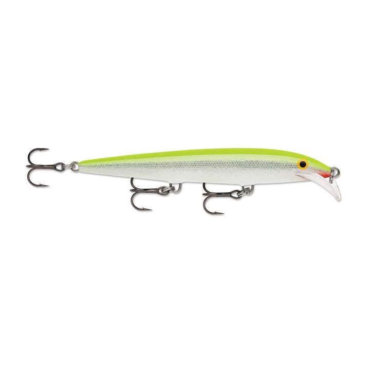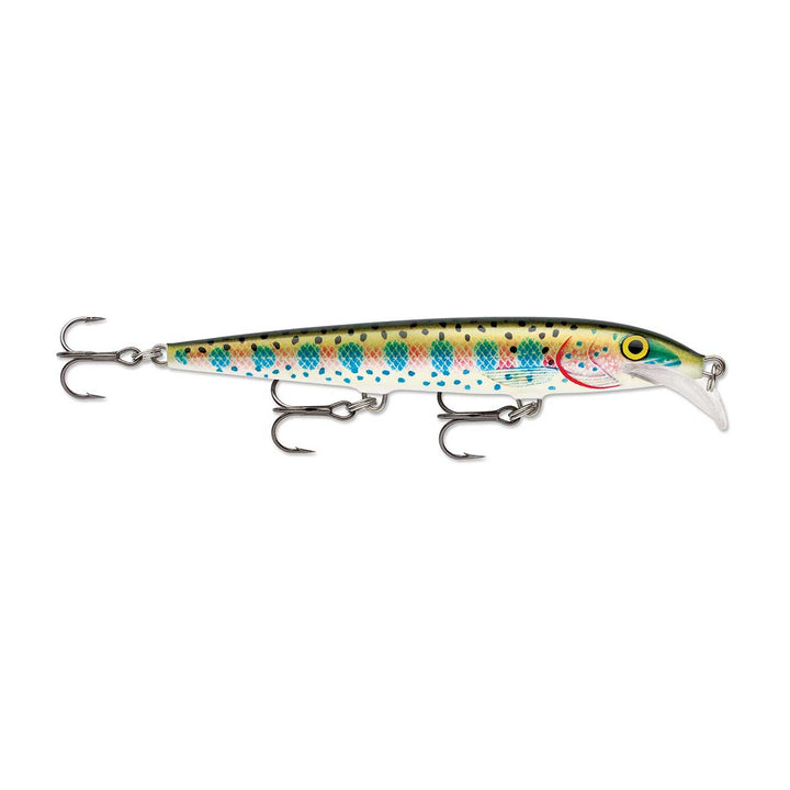 Though evasive in action, this classic Rapala minnow shape has a graceful, natural wobble for finesse tactics, yet responsive enough to be fished aggressively. Baitfish skitter and scatter when they are pursued by predators – it's this erratic and evasive action that triggers the strike. Made of balsa, with a custom Scatter Lip, the Scatter Rap® Minnow consistently swims with an erratic and evasive sweeping action – perfectly mimicking vulnerable baitfish. Cast or trolled, it is the perfect choice for any species of gamefish.