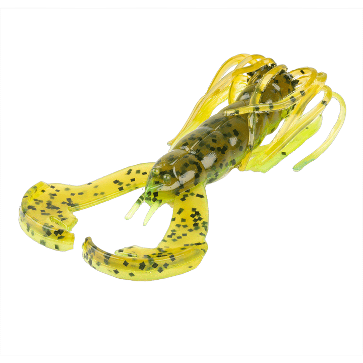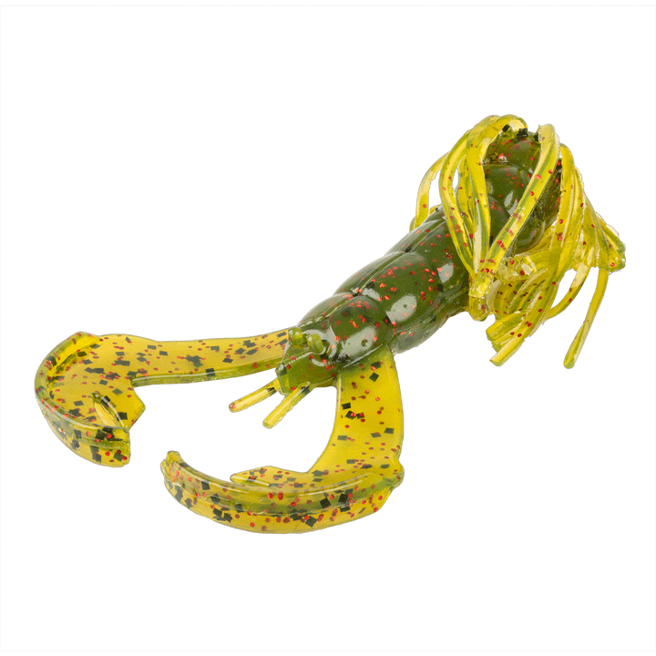 The crazy cousin in the Rage Craw family, Strike King's Rage Luau Craw came to party. Built with patented rage flange technology and a soft plastic skirt attached the head of the bait, the Luau Craw is perfect for rigging alone on a jighead or Texas rigging it to fish it through cover. The skirt pulls tightly to the body when it's moved through the water and slowly expands as it sits still, giving the look of fleeing prey.