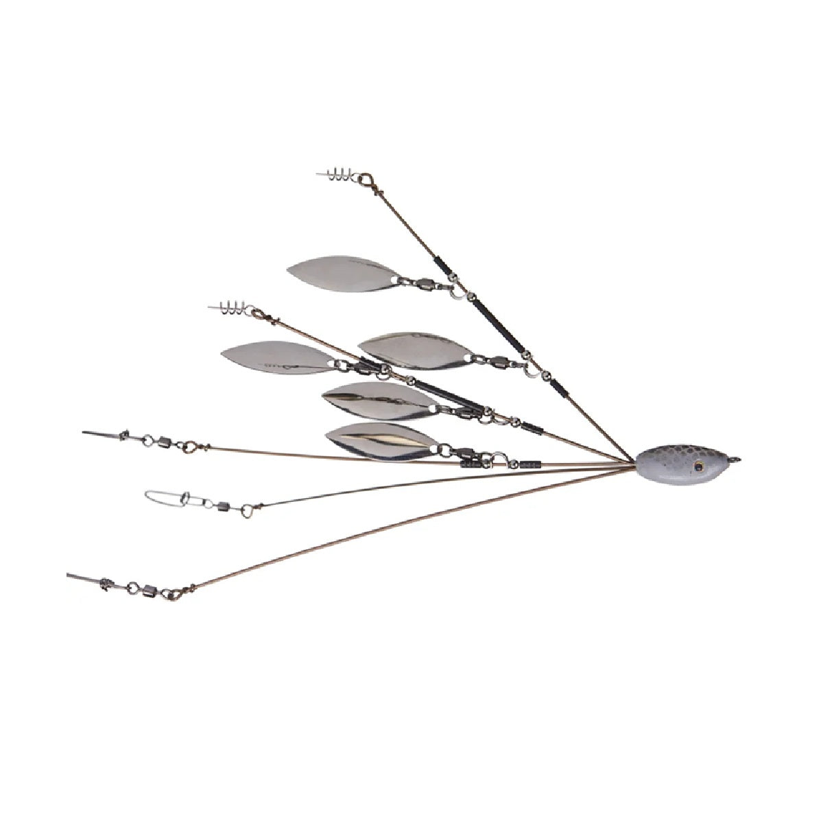 - Natural Baitfish Action – Perfect spacing to simulate a bait ball