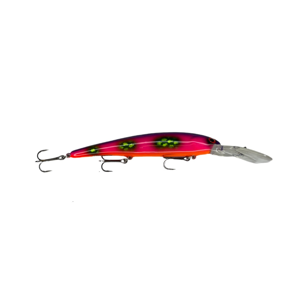 The signature wide wobble action and loud internal rattles make it a go-to choice for both day and night trolling. Domka’s custom finishes not only attract more strikes but also withstand the abuse of long hours on the water.