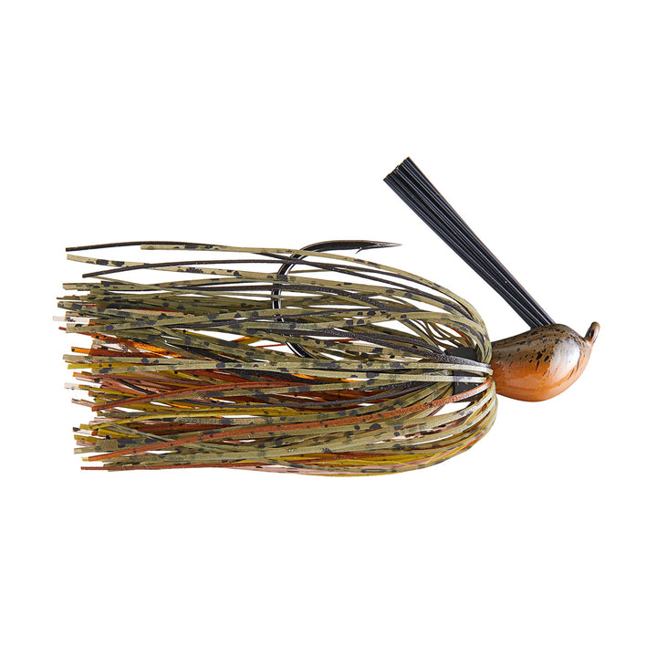 Built around a custom-designed, compact head, this jig slips through grass, wood, and brush with ease. A hand-tied finesse skirt adds subtle flare, while a medium-wire Gamakatsu hook delivers power and reliability for hooksets in tight quarters. Whether you're flipping laydowns, skipping docks, or probing shallow vegetation, the Compact Pitchin' Jig gets in and out clean—and puts big bass in the boat.