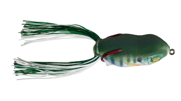 After hundreds of hours of on-the-water product testing and refinement, the Scum Frog Launch Frog is the new pinnacle of technical design and performance in topwater frogs. Featuring a proprietary tungsten “parasite” weight system with integrated locking tabs, which enable the weight of the Scum Frog Launch Frog to be attached securely on the shank of the hook to ensure proper weight distribution for longer casts and consistent performance. It is also built with a wide body and a brass button tail weight that allows it to sit in a nose up position to make walking the dog extremely easy.