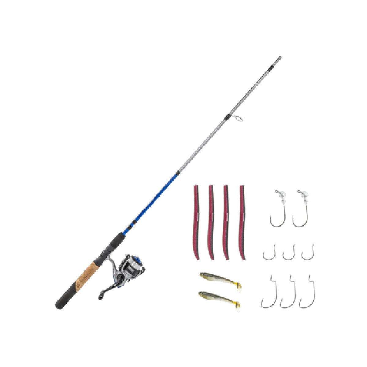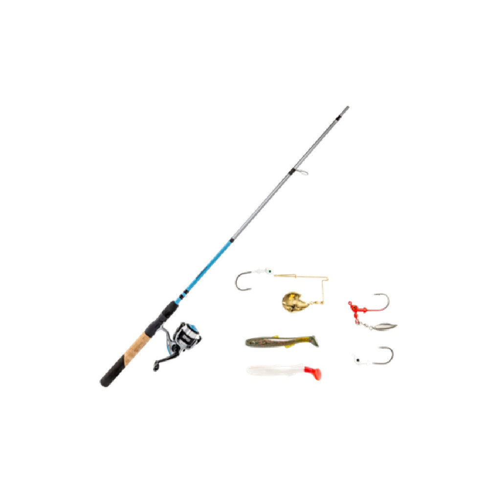 • Complete spinning combo kit with rod, reel, and tackle